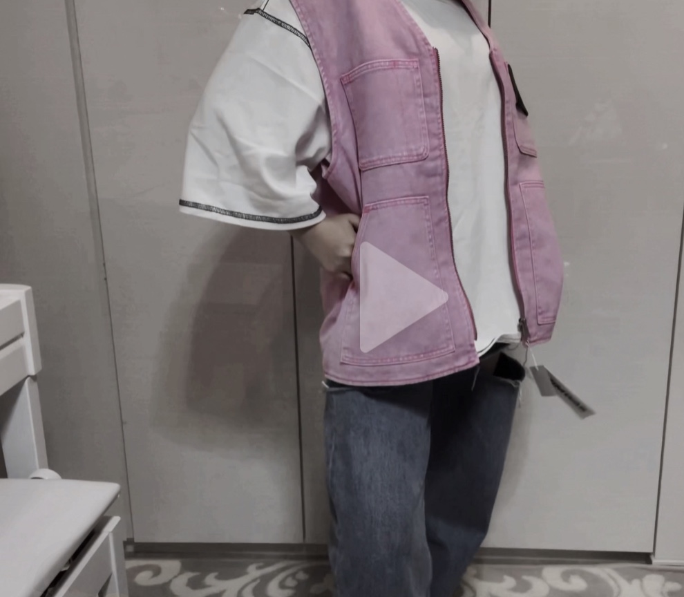 これは、ピンクのデニムジャケット、Tシャツ、そしてデニムのパンツです☀️